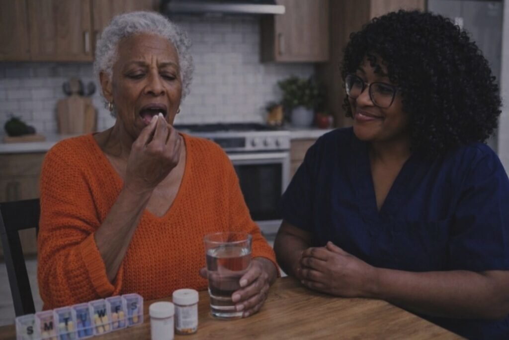 Friendly non medical reminders that help clients take medications on time, supporting routine, safety, and peace of mind for families.