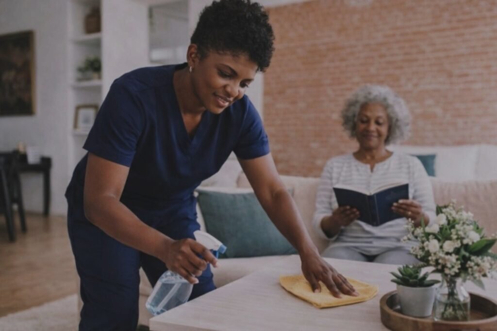 Help with laundry, dishes, tidying living areas, and maintaining a clean, organized, and safe home environment for daily comfort.